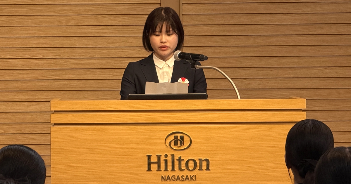 新入社員代表挨拶では、ヒルトン長崎配属の遠山さんが