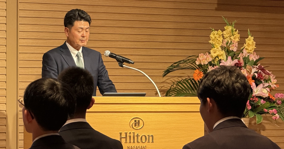 新入社員代表挨拶では、ヒルトン長崎配属の遠山さんが