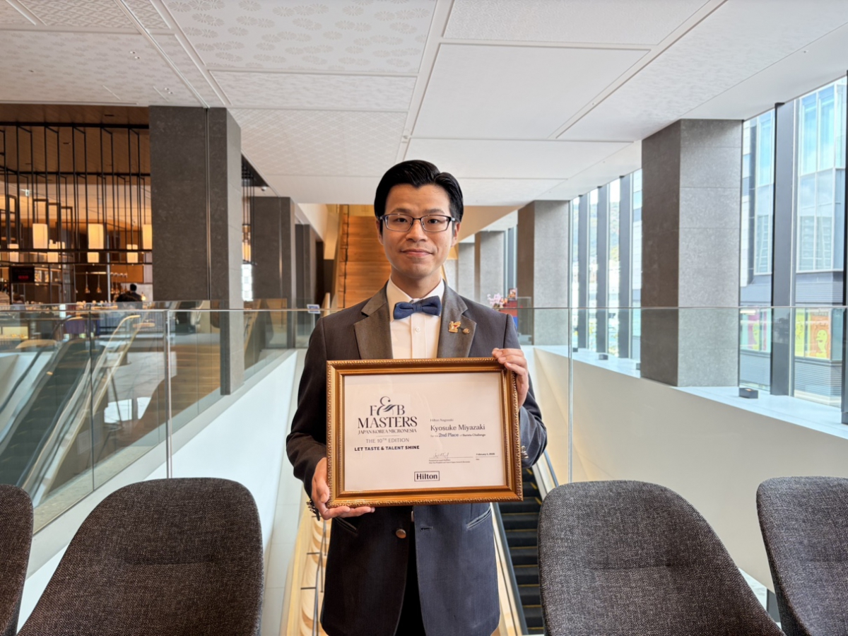 ヒルトン長崎 ラウンジ&バー「セブンシーズ」バリスタの宮崎 恭介(みやざき きょうすけ)が、2月に開催されたヒルトングループ内の料飲コンテスト「F&Bマスターズ2026」バリスタ部門において、2位を受賞いたしました。